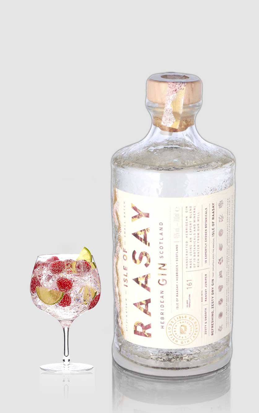 Denne gin er destilleret på en base af skotsk korn, og smagsprofilen er inspireret af øens maritime klima og frodige vegetation. Den er tilsat 10 nøje udvalgte botanicals, herunder enebær, korianderfrø, angelikarod, citronskal, appelsinskal, lakridsrod og lokal hyldeblomst. Desuden bruges vand fra Raasays egne kilder, hvilket giver ginen en unik mineralsk friskhed.