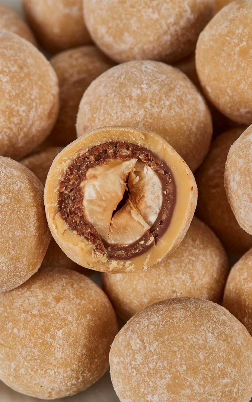Oplev en symfoni af sprødhed og sødme med disse økologiske italienske hasselnødder. De er nænsomt ristede, svøbt i blød nougat og knasende krokant, før de får et generøst lag af vores prisvindende karamelliserede Amber Classic-chokolade. En perfekt balance mellem dyb umami og gylden karamel